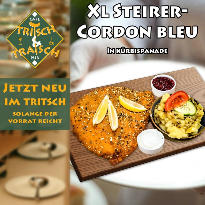 Wer kein Frühstück oder Brunch genießen möchte, den können wir vielleicht mit unseren hausgemachten Ripperl mit Steakhouse Pommes und grünem Salat, im Tritsch begeistern! Die Beilage dürft ihr selbst wählen. Ihr entscheidet! Oder soll es doch lieber ein Surschnitzel mit Kartoffelsalat sein?